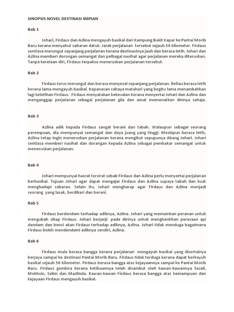 Sinopsis Destinasi Impian Bab 1 Hingga Bab 6 Pdf